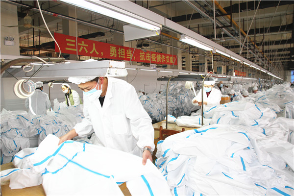 公司工会牵头组织生产部门详细调研,掌握每个工序生产情况,制订周密方案,从2月18日起至防护服生产任务完成,在生产车间流水线同时开展班组产量竞赛和操作能手竞赛。竞赛准确到人、具体到日。