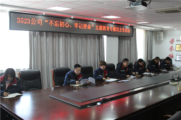 近日,际华3523公司召开了“不忘初心、牢记使命”主题教育专题民主生活会。会议紧扣学习贯彻习近平新时代中国特色社会主义思想这一主线,突出“力戒形式主义、官僚主义”这一重要内容,围绕“理论学习有收获、思想政治受洗礼、干事创业敢担当、为民服务解难题、清正廉洁作表率”的目标,充分运用主题教育成果,按照习近平总书记关于“四个对照”的要求,坚持问题导向,盘点收获、检视问题、深刻剖析,认真开展批评与自我批评,明确努力方向和整改措施。会议由公司党委书记、执行董事佟胜利主持,公司全体领导班子成员参会。