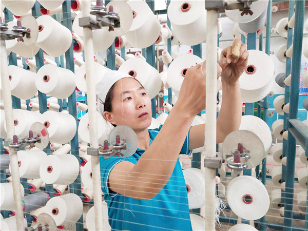 后纺车间设备、运转人员分区域做着开车前的准备工作。随着第一声马达声响,全体人员各就各位,投入紧张忙碌的生产中。在大家的齐心努力下,所有机台准时开机运行,开班当天99.4%的出勤率为冲刺四季度打下了坚实的基础。