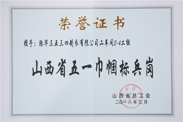 金色的奖章讲述劳动美。在春风化雨,杨柳依依的春天,山西省总工会传来喜迅,际华3534公司二车间3-4工组喜获“山西省五一巾帼标兵岗”称号,技术处模板中心工艺技术员吕春红同志喜获“山西省五一巾帼标兵”荣誉称号。
