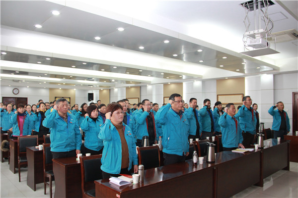宣讲前,面对鲜红的党旗,十九大党代表王南石同志带领全体党员重温了入党誓词。