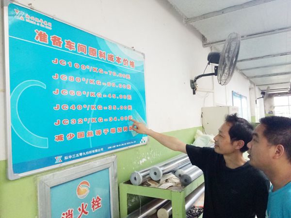 图为6月13日,准备车间开展减少回丝浪费教育。