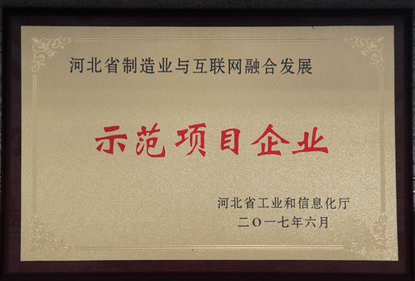 6月6日,河北省工信厅在河北宾馆召开了“互联网+”制造业试点示范项目经验推广活动,并举行了全省首批制造业与互联网融合发展示范项目企业授牌仪式。际华3502公司因承担完成2016年度河北省“互联网+制造业”项目《定制服装电子商务系统的开发与建设》获得了“河北省制造业与互联网融合发展示范项目企业”荣誉称号。