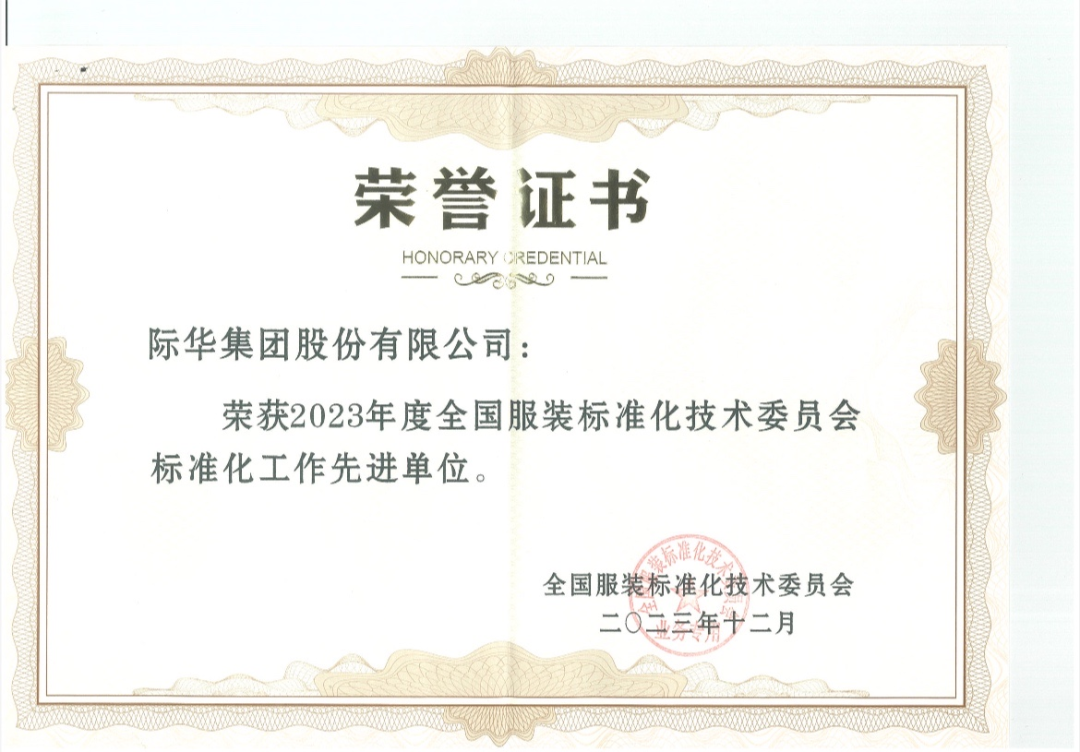 被授予此项荣誉,表明了全国服装标准化技术委员会、中国服装协会标准化技术委员会对于际华集团在纺织品标准化工作方面的肯定。未来,际华集团将更加积极地参与各项国家标准和行业标准的起草和修订工作,提升公司行业话语权,助力公司高质量发展。